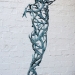 Een verweerd doek dat zwierig door de lucht gaat nog met de afbeelding van een vrouw, het fantoom.