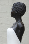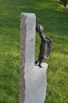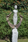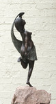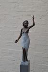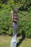 2013Een meisje dat naar balans zoekt in de wind. Van graniet met gewaad van brons. Beeld en sokkel zijn uit een stuk graniet