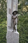 2011Bloemenmeisje van oud kruis grafmonument, Belgisch hardsteen, de roosjes aan de onderzijde langs het kruis zijn oorspronkelijk