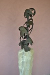 2015Vrouw verstrengeld in een eindeloos touw waar ze zich niet uit kan bevrijden, gevangen door hartstocht van brons in zuil graniet (op RVS voetplaat voor binnen)
