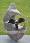 2012Zeemeermin van brons op grote zwerfsteen waarin de staartvinnen uitgehakt zijn.