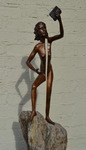 2014Eerste beeldje uit een serie van 10 verschillende tafereeltjes. (De rood granieten vergelijkbare zuilen maken de voorstelling tot een serie maar het zijn alle unieke afzonderlijke beeldjes voor binnen of buiten.) Het bronzen beeldje is 29 cm hoog